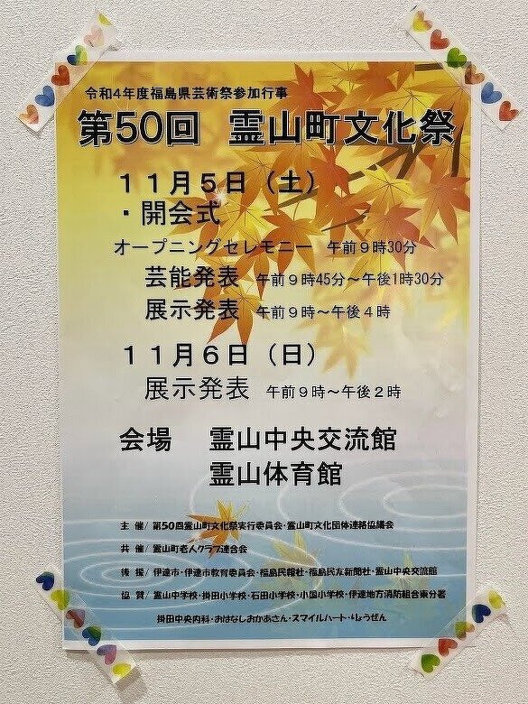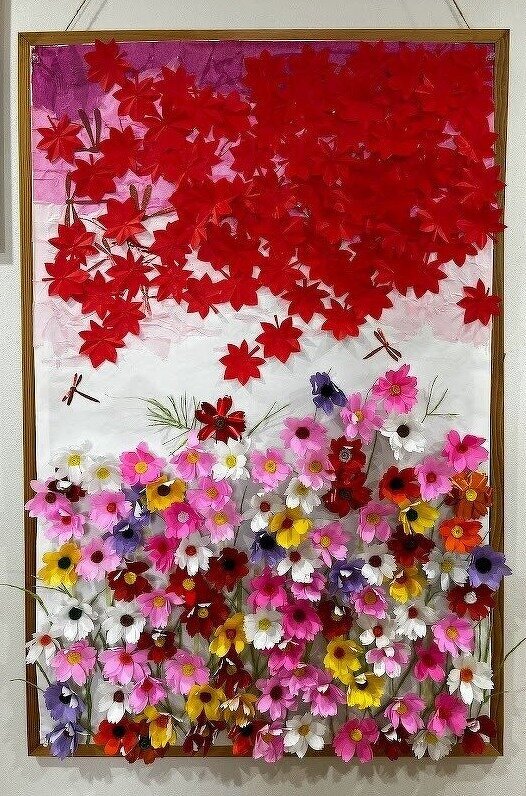2022年11月11日( 金 ) 介護予防センター掛田 第50回 霊山文化祭 展示発表に参加させていただきました。 日頃レクリエーション等で作成している作品を展示させていただきました。 当初、小さいブースかと思いきや、ボード3枚分もあり沢山飾らせていただきました。 早くも、来年度に展示できそうな作品が出来ています。