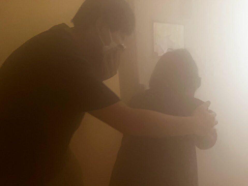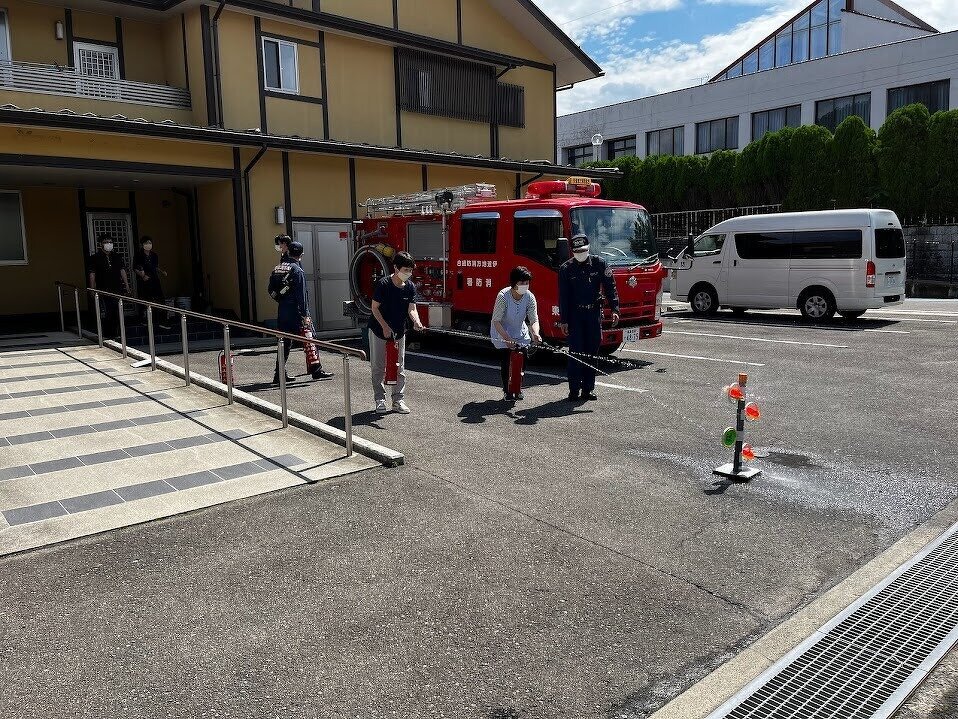 2023年07月14日( 金 ) 介護予防センター掛田 防災訓練実施しました。 6月28日に防災訓練として通報訓練・避難訓練・消火訓練(水消火器使用)・スモーク体験を行いました。 スモーク体験は、普段使っている部屋で行いました。 写真の通り、周りは真っ白の状態で 普段使っている部屋も手探りでないとわからない状態でした。 実際の火災は経験したくありませんが、 日頃からの訓練は大切だと感じさせられました。