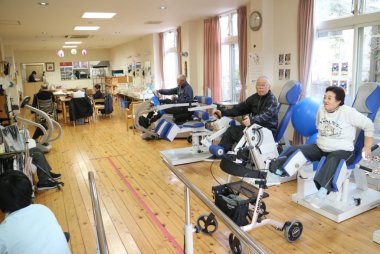 可能な限り自宅で自立した日常生活を送ることができるよう、「医師」の医療的な管理、指示の下、「理学療法士」や「作業療法士」といったリハビリ専門職が中心となって、介護職等多職種が協働して、身体機能、生活機能を維持・向上させ、自立を支援する所です。通所介護(デイサービス)が日常生活の介護を重点的に行っているのに対し、通所リハビリテーションでは、身体機能、自立した生活及び社会生活の維持向上のためのリハビリテーションに重点を置いています。